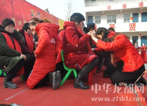 情景劇《時間都去哪兒了》表演結(jié)束之后,40多名老人在兒子、媳婦的攙扶下走上舞臺,在“從小你就告訴我,告訴我做人要懂得孝”的歌聲中,兒子、媳婦們向父母深深鞠躬,隨后重重地跪在父母面前,歸攏著父母花白的頭發(fā),凝視父母滿是皺紋的面容,不少父母、孩子激動地流下了淚水,與兒女擁抱在一起。70多歲的位大爺表示,兒子這一跪打開了他們之間的心結(jié),讓他們更加理解對方。魏集村老人譚玉榮說:“我與媳婦關(guān)系一直非常和諧,媳婦孝順,孫子也學(xué)著媳婦孝順,非常聽話,這次活動媳婦向我跪下述說自己的心聲,讓我們娘倆的關(guān)系更親近了。”