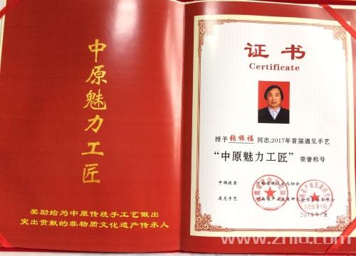 經(jīng)2017首屆中原魅力工匠評審工作委員會(huì)認(rèn)真初評、終評、綜合打分,最終張振福泥塑作品《老來伴》在推選活動(dòng)中榮獲“金獎(jiǎng)”。張振福等27位藝術(shù)家榮獲“中原魅力工匠”榮譽(yù)稱號(hào)。張振福作為民間藝術(shù)家代表在頒獎(jiǎng)典禮上作了唯一的典型發(fā)言即“獲獎(jiǎng)感言”。