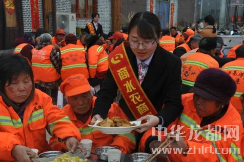 春節(jié)以來,城區(qū)人口增加,環(huán)衛(wèi)工人工作量大增,許多工人吃不上應(yīng)時(shí)熱飯。為感謝環(huán)衛(wèi)工人的辛苦工作,愛心企業(yè)商水農(nóng)商行精心為當(dāng)日值班的環(huán)衛(wèi)工作提供了免費(fèi)午餐,并為每位環(huán)衛(wèi)工作提供了一份精美禮品?!吧显?!”菜肴上夠十個(gè),農(nóng)商行工作人員端上來大盆元宵?!袄哿艘簧衔纾茉谶@和大家一道過元宵佳節(jié),真是太感謝農(nóng)商行的領(lǐng)導(dǎo)!”65歲的環(huán)衛(wèi)工人趙明亮吃著甜滋滋的元宵高興地說。
