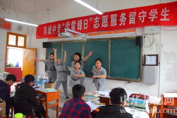 為了更好地傳承雷鋒精神,3月6日,項城市中等專業(yè)學校志愿服務隊走進學校,來到留守學生身邊,給他們送去一場精彩的文藝演出。