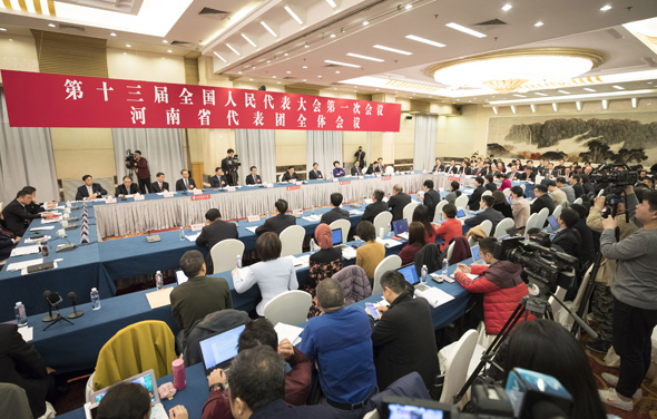 3月6日,十三屆全國人大一次會議河南代表團全體會議向媒體開放。