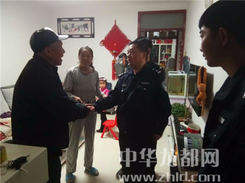 民警一邊安撫老人情緒,一邊進(jìn)一步與老人溝通,得知其子名叫趙冬明,在周口市開發(fā)區(qū)地稅局工作。老人沒有記住家人電話、無(wú)法聯(lián)系,民警于是開車將老人送至周口市開發(fā)區(qū)地稅局家屬院,經(jīng)多方打聽終于找到老人兒子趙冬明家,將老人安全送到家中。老人激動(dòng)的熱淚盈眶,并向民警表示感激。