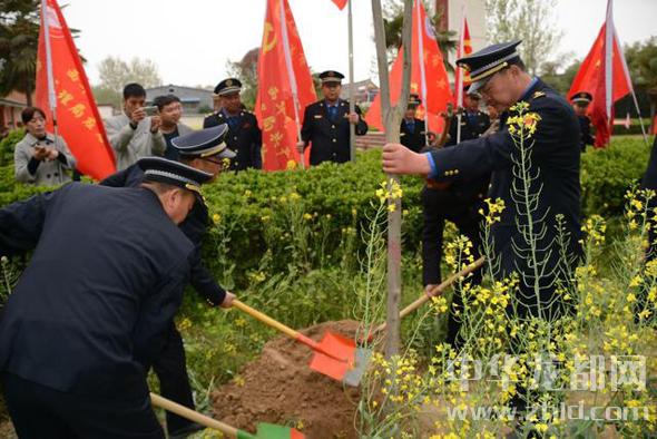 隨后,黨員們進行了掃墓活動,以黨支部為單位,每個支部栽種一顆樹木。