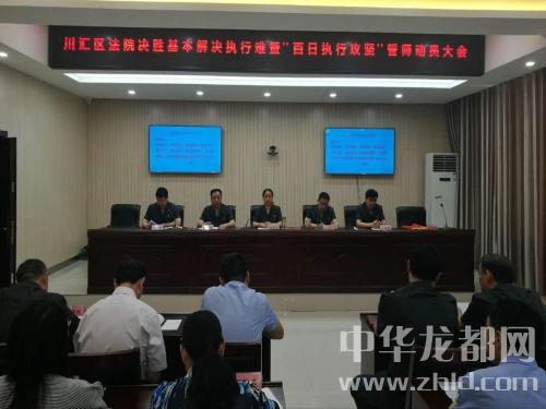 中華龍都網(wǎng)訊(記者姬慧洋 陳永團(tuán) 通訊員 馬殿力 文/圖)5月4日上午,川匯區(qū)法院組織召開決勝基本解決執(zhí)行難暨“百日?qǐng)?zhí)行攻堅(jiān)”誓師動(dòng)員大會(huì),該院班子成員、中層正職、執(zhí)行警務(wù)局全體人員參加了本次會(huì)議,川匯區(qū)人大、政協(xié)、區(qū)委政法委各位領(lǐng)導(dǎo)和部分人大代表、政協(xié)委員出席會(huì)議。