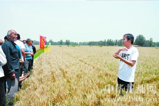 昨日下午,小麥專家在周口市天華農(nóng)業(yè)合作社魏集鎮(zhèn)小麥生產(chǎn)基地察看小麥長勢。今年該合作社種植優(yōu)質(zhì)小麥2萬多畝,預估畝產(chǎn)652公斤。記者 付永奇 攝
