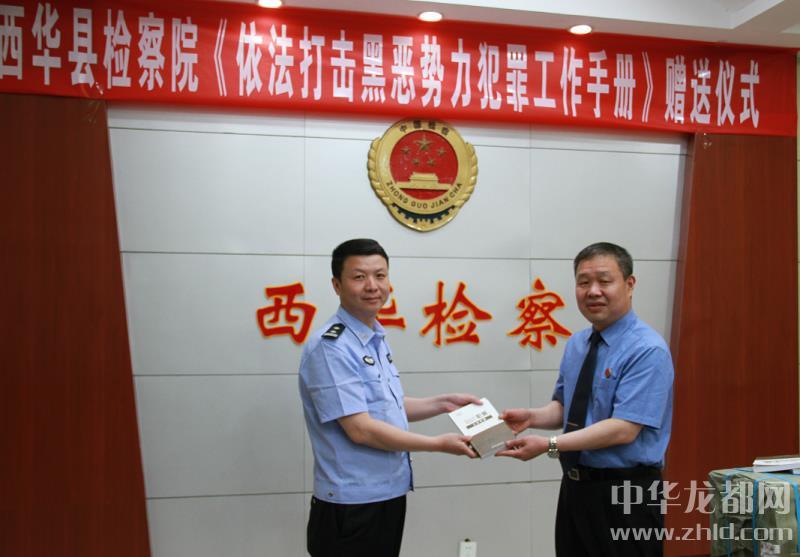 中華龍都網(wǎng)訊(周口報(bào)業(yè)全媒體記者 張猛 通訊員 屈琳琳)5月29日,西華縣檢察院將他們精心編寫的《依法打擊黑惡勢力犯罪工作手冊》贈(zèng)送給該縣法院、公安及檢察干警,助力掃黑除惡專項(xiàng)斗爭。