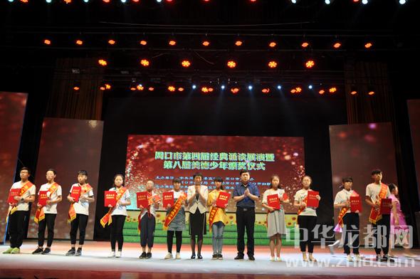 今年,經(jīng)過組織申報、層層推薦、審核公示、投票評選等程序,“市美德少年評委會”授予商水縣湯莊一中的王一帆、殷夢丹,周口實驗小學的盧若沖,太康縣城關中學的李思墨等11名同學“周口市美德少年”榮譽稱號;授予王博、趙子怡等10名同學“周口市美德少年”提名榮譽稱號。在熱烈的掌聲中,這些身著佩帶的美德少年走向舞臺,與會領導為他們頒發(fā)獎杯和證書。看著手捧獎杯的美德少年,臺下的小學生宋佳佳悄悄告訴身邊的媽媽:“這些哥哥姐姐有的舍己救人,有的助人為樂,有的尊老愛幼,優(yōu)秀的品質值得我們學習,以后我也要從小事做起,從點滴做起,爭取成為下一屆的美德少年。”