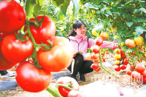 依托河南農業(yè)大學專家團隊,扶溝縣蔬菜研究院研發(fā)出400多個番茄新品種,通過集中展示讓種植戶優(yōu)中選優(yōu),并實施對貧困戶購買種苗優(yōu)惠50%、特困戶免費供應的優(yōu)惠政策,帶動206戶貧困戶實現(xiàn)脫貧。圖為工作人員在記錄番茄新品種的試驗數(shù)據(jù)。谷志方 攝