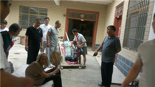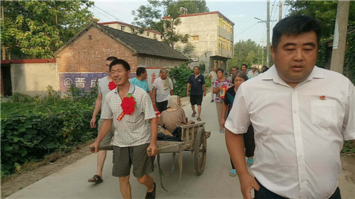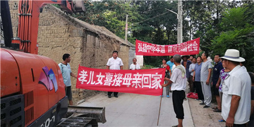當(dāng)日早上,秋渠鄉(xiāng)高小橋行政村牛橋和孫大莊自然村,鄉(xiāng)村干部打著橫幅、孝順兒、媳胸帶紅花,用架子車?yán)先耍竺娓鴩^的村民,通過(guò)隆重“接老人回家”活動(dòng),激勵(lì)更多人孝老愛(ài)親。