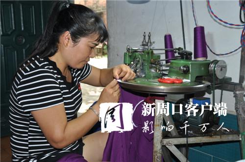 今年以來,商水縣實施精準扶貧,大力發(fā)展服裝代加工,讓不能外出打工的貧困群眾從工廠領(lǐng)回設(shè)備和原材料在家加工,廠方上門進行技術(shù)指導并回收成品。圖為該縣巴村鎮(zhèn)董村村民使用廠方提供的毛衣編織機在家加工羊毛衫。