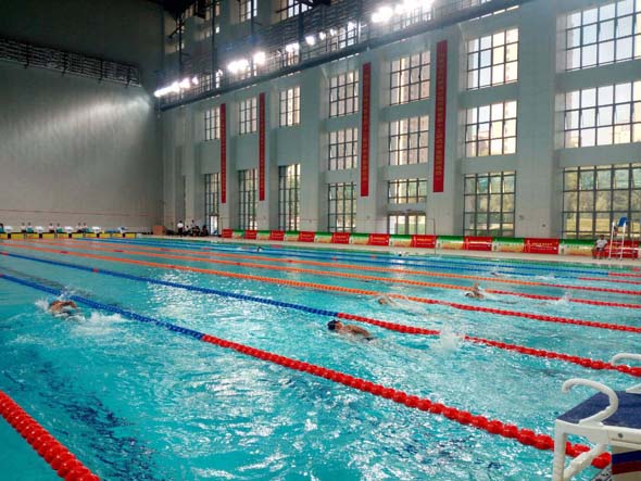 據(jù)了解,市游泳館占地面積4.4萬平方米,總建筑面積24398.69平方米,地上建筑面積20846.08平方米,地下建筑面積3552.61平方米,地上三層、地下一層,可容納觀眾1200人。市游泳館內(nèi)共有兩個大的泳池,一個比賽用,長50米、寬25米,規(guī)格達(dá)到奧運會游泳比賽泳池標(biāo)準(zhǔn),比賽時水深將達(dá)到2米;另外一個練習(xí)用,供參賽選手熱身,水深1.2米。