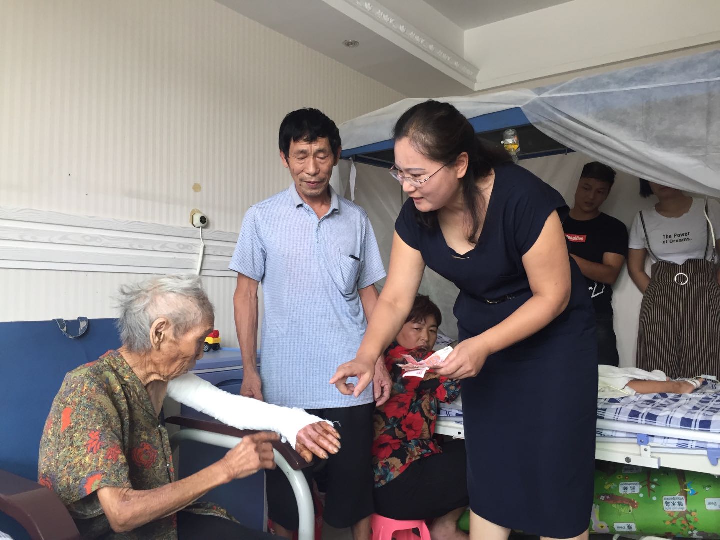 8月26日,駐村第一書記劉春華和村脫貧責(zé)任組組長李小林懷著感激之情,為周口燒傷醫(yī)院送去錦旗兩面。周口燒傷醫(yī)院長張巋說:“幫扶工作是黨的工作,縣、鄉(xiāng)、村干部的真心幫扶,我們醫(yī)院也應(yīng)當發(fā)揮扶貧濟困的作用,盡一些社會責(zé)任,為貧困的群眾做點好事,解決他們的實際困難”,院方當即決定贈送給李二俊老太太2000元現(xiàn)金營養(yǎng)費?!?/p>
