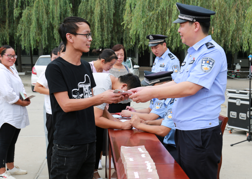 9月6日,扶溝縣公安局舉行公開(kāi)退贓大會(huì),將“2·28”詐騙案追繳的56萬(wàn)元現(xiàn)金返還給受騙群眾。