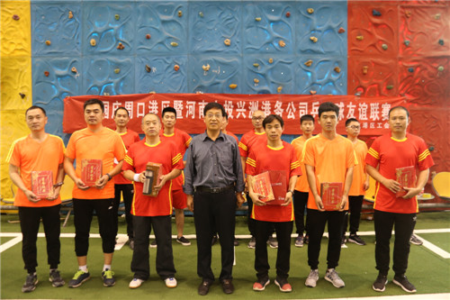 當(dāng)天上午9時(shí)許,港區(qū)管委會(huì)主任程若光宣布比賽開始,并上場(chǎng)與參賽選手切磋球技。經(jīng)過(guò)小組賽、淘汰賽的激烈角逐,港區(qū)代表張偉明、張黎明分別獲得冠亞軍,河南水投興洲港務(wù)有限公司職工楊磊獲得季軍。賽后,港區(qū)黨委委員張東立為參賽人員頒獎(jiǎng)。