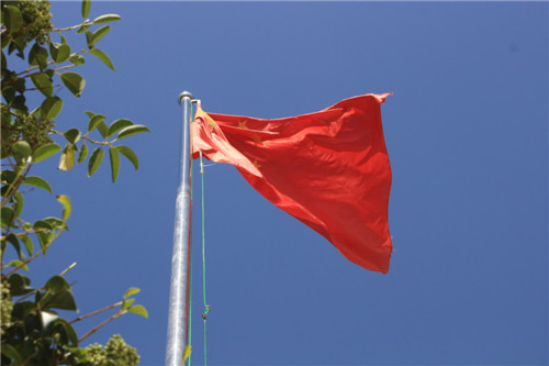神圣而又雄壯的國歌響起了。孩子們瞪大了眼睛,小擎旗手猛地甩出臂膀,將耀眼的五星紅旗撒在陽光下,全體孩子們行少先隊(duì)隊(duì)禮,注視著國旗冉冉升起。孩子們的歌聲越來越嘹亮,直到最后還在高喊:“前進(jìn),前進(jìn)進(jìn)……”