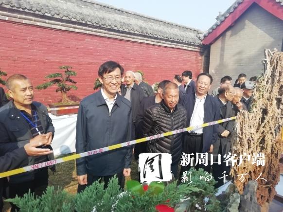 簡(jiǎn)樸、熱烈的開(kāi)幕式結(jié)束后,與會(huì)人員饒有興趣地欣賞分布各個(gè)展區(qū)的盆景和菊花,精美的盆景和金黃的菊花讓人流連忘返。
