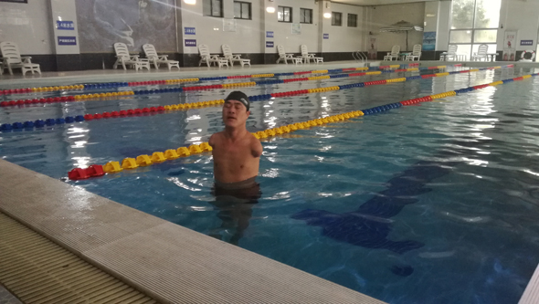 在交談中記者了解到,島建書在5歲時(shí)觸高壓線造成雙臂截肢。“12歲那年,我在電視上看別人游泳,覺得別人能做到的我也能做到,從那時(shí)起我就決定學(xué)習(xí)游泳?!睄u建書說,當(dāng)時(shí)沒有條件,他就在河里自學(xué),期間還兩次溺水,所幸被人救起。