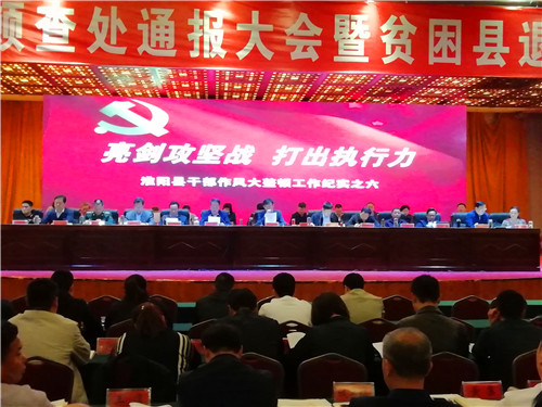 10月31日上午,淮陽縣干部作風(fēng)大整頓查處通報(bào)大會(huì)暨貧困退出縣級(jí)自評(píng)動(dòng)員會(huì)在羲皇賓館東三樓會(huì)議廳召開??h委書記馬明超出席會(huì)議并講話,縣長王毅主持會(huì)議,縣委副書記、政法委書記岳新坦宣讀《脫貧攻堅(jiān)督查通報(bào)》,縣委常委、縣紀(jì)委書記、縣監(jiān)委主任王之夢(mèng)宣讀《通報(bào)》,被通報(bào)單位負(fù)責(zé)人作表態(tài)發(fā)言。