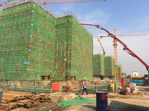 據該項目副總經理王志強介紹,目前該項目南地塊基坑支護主體已經完成,正在進行土方的開挖,已出土約20萬立方米,完成總出土量的50%,地下室底板抗浮錨桿完成30%。中區(qū)地塊共13棟住宅,其中2棟已施工至主體7層,2棟施工至主體5層,其余9棟正在進行正負零以下主體施工。一字型商業(yè)金街主體施工已經封頂 。萬達展示中心已于10月27日正式對外開放。北地塊商業(yè)區(qū)正在進行清表工作,公寓區(qū)清表工作已結束,樁基已經進場。