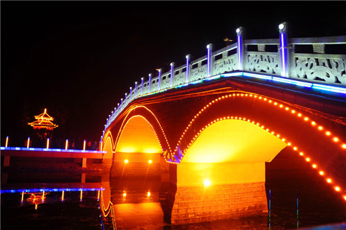 統(tǒng)計數(shù)據(jù)顯示,貫穿城區(qū)“五河”的濱水景觀廊道目前已達(dá)45公里,環(huán)繞互通的水系雨污分流,清波蕩漾,千年古城活力再現(xiàn);沿岸廣場、游園、玉欄、花木、亭、廊、親水平臺,玲瓏別致,相映成趣,形成了無數(shù)個多元空間,為市民提供了休閑健身空間和漫步快跑的理想場所;城區(qū)的50多座街心主題文化園,依勢而修,與沿河的美化、綠化、亮化融為一體,每天傍晚,清波蕩漾,虹橋飛架,臥波噴泉伴隨著悠揚的音樂翩翩歡舞,“五河”上下,燈火璀璨,絢麗多彩,如夢如幻?!熬藕永@真源,五湖潤鹿邑”的生態(tài)水系景觀讓行走其間的人恍若走進(jìn)江南水鄉(xiāng),人在水上,水在畫中的美妙意境讓行走其間的人身心放松、回歸自然。