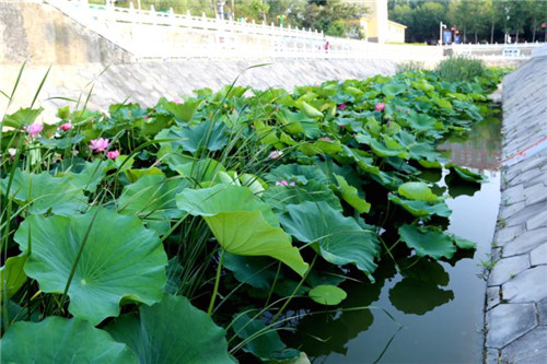 改善水質(zhì),美化環(huán)境,是當(dāng)初實施“五河共治”的最終目的。王力說,為實現(xiàn)這一目標(biāo),確?!拔搴印焙訒乘澹谰俺T?,縣“五河辦”在廣泛宣傳引導(dǎo)群眾愛鹿邑、愛“五河”,嚴(yán)禁污水,垃圾入河的同時,還積極創(chuàng)造條件克服施工困難,采取科學(xué)抽排、清淤除壩、提升水位,增強(qiáng)水循環(huán)和小閘調(diào)控,生化處理,放水養(yǎng)魚等措施加強(qiáng)水質(zhì)提升;先后在“五河”建設(shè)人工生態(tài)浮島近1萬平方米,種植水生美人蕉、睡蓮、梭魚草、荷花、常綠鳶尾、蒲草、粉綠狐尾藻、香菇草等多種挺水植物和浮水植物,既有效改善了水質(zhì),又提升了景觀效果。兩多年來,“五河人”按照縣委要求建閘門、堵漏污、修泵站、清淤泥、除壩體、掏橋眼、通管網(wǎng)、種蒲草、植綠種樹、保亮化,使“五河共治”成果在精細(xì)管護(hù)中明顯改善提升。