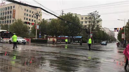 鄲城交警雨天全勤暖人心