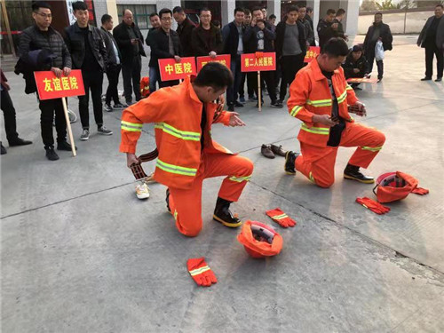 來自消防安全重點單位的8個代表隊作為第一支隊伍進行體能、技能競賽。體能技能競賽設(shè)有兩盤水帶連接、50米負重跑、原地著戰(zhàn)斗服和俯臥撐4個項目,參賽隊員斗志昂揚、技能精湛,充分的展示了微型消防站建設(shè)取得的成績和微型站隊員敢打必勝的良好精神風貌,為首屆行業(yè)系統(tǒng)微型消防站業(yè)務(wù)技能比武大賽開了一個好頭。
