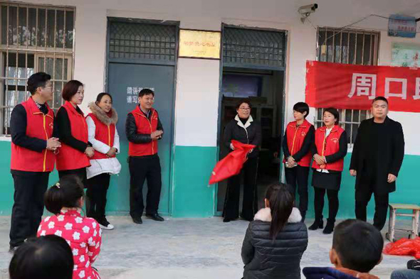 據(jù)了解,楊莊小學(xué)目前有學(xué)生150多名,由于學(xué)校圖書(shū)非常緊缺,學(xué)生們的日常學(xué)習(xí)生活非常單調(diào)。今年11月8日,周口助夢(mèng)公益團(tuán)負(fù)責(zé)人在王凱偉回鄉(xiāng)探親之際,到該校為師生講解交通安全知識(shí)時(shí),了解到學(xué)校的情況,便發(fā)動(dòng)公益團(tuán)成員積極為楊莊小學(xué)捐助圖書(shū),并建立全市首座“助夢(mèng)愛(ài)心書(shū)屋”。