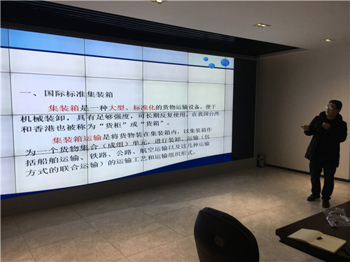 圍繞集裝箱的分類、結(jié)構(gòu)、制造材料、發(fā)展現(xiàn)狀和設(shè)備操作等業(yè)務(wù)知識(shí),李宗潭博士展開(kāi)話題,詳細(xì)闡述。在授課過(guò)程中,李宗潭博士通過(guò)多媒體的形式,圖文并茂,繪聲繪色,聽(tīng)眾們?nèi)褙炞?,并不斷做筆錄。