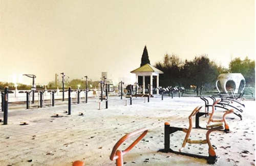 2018年冬天的第一場大雪,把周口市中心城區(qū)沙潁河風(fēng)景區(qū)裝扮得清新雅致,別有一番風(fēng)味?;ú荨⒕G植、雕塑、亭臺(tái)、環(huán)廊、步道乃至健身器材,在雪的映襯下,都顯得通透而有靈性,讓人欣喜非常。