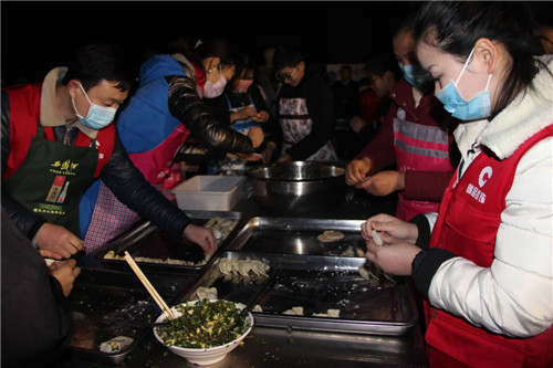 12月22日冬至,是中華民族傳統(tǒng)的重要節(jié)日,每年的今天,太康縣“愛心粥屋”都會舉辦志愿者包餃子獻(xiàn)愛心活動。早上5時,雖然天氣嚴(yán)寒,人們大都在夢境中,但“愛心粥屋”的小院里卻燈火通明、人頭攢動,百余名志愿者如約而至,愛心企業(yè)“河南碧海食品”提供的餃子所用食材已擺放到位,來自縣統(tǒng)戰(zhàn)部、縣質(zhì)監(jiān)局、縣物流商會和社會各界志愿者穿上圍裙、帶上口罩、排成三排,他們分工明確,有的和面、有的搟皮、有的包餃子,整個小院歡聲笑語、氣氛融合,場面十分熱鬧喜慶,由于志愿者相互配合默契,包餃子速度也非常的快,在短短的一個小時時間,夠380多名環(huán)衛(wèi)工人食用的2萬余枚餃子都已包制完成。