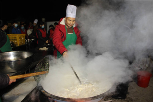 早上6點,“香噴噴餃子出鍋嘍”……隨著占鍋的志愿者大廚王偉峰的喊聲,縣統(tǒng)戰(zhàn)部副部長李忠、王天輝,縣質(zhì)監(jiān)局局長王桂榮、臺辦主任馬艷勤等帶領(lǐng)志愿者盛水餃,一拖板放置六碗、擺在桌上、預(yù)集中端送。