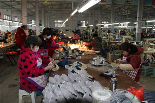 超琪鞋業(yè)是楊湖口鎮(zhèn)另一家以鞋面訂單加工為主、與上海東嘉鞋業(yè)合作的外貿(mào)出口企業(yè),年?duì)I業(yè)額達(dá)上千萬。在該公司“扶貧車間”里,有30多名像秦梅英一樣分別來自楊湖口鎮(zhèn)周邊的貧困和非貧困村的貧困戶,對(duì)200多名留守婦女和貧困群眾進(jìn)行精準(zhǔn)幫扶,是有名的“巧媳婦工程”示范加工點(diǎn)。該鎮(zhèn)鎮(zhèn)長劉新建說,超琪鞋業(yè)是全鎮(zhèn)產(chǎn)業(yè)精準(zhǔn)扶貧、帶貧行動(dòng)的一個(gè)縮影。楊湖口全鎮(zhèn)目前已發(fā)展有工業(yè)企業(yè)24家,養(yǎng)殖戶364戶,規(guī)模以上養(yǎng)殖企業(yè)17家,專業(yè)合作社116家。這些產(chǎn)業(yè)均以建檔立卡貧困村和貧困戶為幫扶對(duì)象,對(duì)貧困戶開展免費(fèi)技能培訓(xùn),幫扶舉措有效解決貧困戶脫貧路上各種問題,為貧困戶就業(yè)增收提供支持,讓這些陷入貧困卻不能改變生活面貌的農(nóng)村婦女有活干、有固定收入,能幸福生活。
