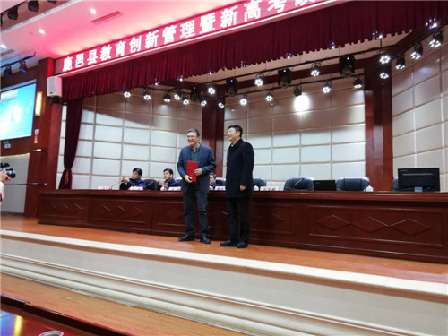 12月26日,鹿邑縣召開(kāi)教育創(chuàng)新管理暨新高考改革專家報(bào)告會(huì)。縣委副書(shū)記、縣長(zhǎng)李剛為報(bào)告會(huì)致辭,勉勵(lì)全縣教育工作取得新突破??h委常委、縣委辦主任宋濤主持會(huì)議。副縣長(zhǎng)王玉超為全國(guó)高考命題理科組組長(zhǎng)、原上海虹口區(qū)教育局局長(zhǎng)、同濟(jì)大學(xué)理學(xué)博士常生龍局長(zhǎng)頒發(fā)"鹿邑縣教育提質(zhì)特聘專家"證書(shū),會(huì)議還對(duì)全縣教育工作者作專題講座。