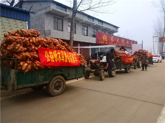 1月14日12時30分,滿載10萬斤愛心蘿卜的農(nóng)用車從張老家行政村整裝待發(fā)。這些愛心蘿卜將被運(yùn)到周口經(jīng)濟(jì)開發(fā)區(qū)廣場(南廣場)、周口精神病院、長青街中屹縫紉機(jī)商場等地向環(huán)衛(wèi)工人及弱勢群體發(fā)放。記者 黃佳 攝