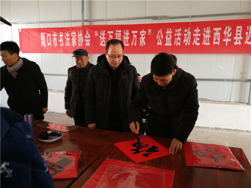 “‘迎新春走基層,進(jìn)萬家送萬?!顒右堰B續(xù)開展多年,今年市書協(xié)持續(xù)開展,就是為了進(jìn)一步弘揚(yáng)傳統(tǒng)文化,普及書法知識,助推扶貧攻堅,為周口這座文化名城建設(shè)作出應(yīng)有的貢獻(xiàn)?!敝芸谑袝鴧f(xié)主席王猛仁說。
