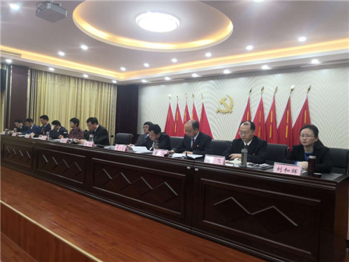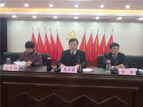 縣委書記馬衛(wèi)東主持會議并代表縣委常委會作工作報告??h委副書記、代縣長田林代表縣委回顧總結(jié)我縣2018年經(jīng)濟(jì)工作,安排部署2019年經(jīng)濟(jì)工作。