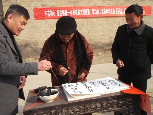 鄧城鎮(zhèn)范莊村72歲的范長(zhǎng)印老人觀展后感觸頗深地說:“這些展品我很多都見過、用過,不過用起來真費(fèi)勁真受罪?。‖F(xiàn)在農(nóng)忙季節(jié)機(jī)器一響,糧食嘩啦啦就進(jìn)家了。我這個(gè)年齡的人最能體會(huì)到咱們國(guó)家的進(jìn)步和社會(huì)的美好!”隨后,老人在留言薄上用握慣農(nóng)具的粗糙大手握起毛筆寫下了“新時(shí)代,得民心”幾個(gè)字。字雖不工整但他的滿腔真情感動(dòng)了在場(chǎng)的群眾,大家把熱烈的掌聲送給范長(zhǎng)印老人。