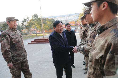 在縣武警中隊(duì),王國璽代表縣四個班子領(lǐng)導(dǎo)向武警戰(zhàn)士致以新春的問候和良好的祝愿,希望全體官兵繼續(xù)發(fā)揚(yáng)軍民團(tuán)結(jié)的優(yōu)良傳統(tǒng),扎實(shí)推進(jìn)部隊(duì)全面建設(shè),全力以赴做好維穩(wěn)工作,努力為太康經(jīng)濟(jì)社會發(fā)展保駕護(hù)航。
