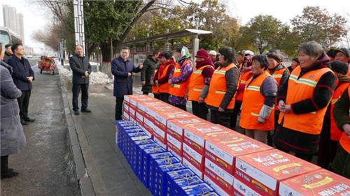 慰問中,皇甫立新、劉國慶一行首先來到新區(qū)“三公開”廣場,慰問堅守一線的環(huán)衛(wèi)工人,向他們致以新春的祝福,并對他們在過去一年里付出的辛勤勞動表示衷心感謝?;矢α⑿轮赋?,一年來,環(huán)衛(wèi)工人們起早貪黑、兢兢業(yè)業(yè),為改善居民生活環(huán)境和提升城市形象付出很多心血和汗水,取得了良好效果,城區(qū)環(huán)境和城市面貌有了很大改善,得到了社會各界的一致好評,希望環(huán)衛(wèi)工人們在春節(jié)期間繼續(xù)發(fā)揚奉獻(xiàn)精神,把縣城衛(wèi)生打造的更加干凈、整潔,讓廣大市民和回家過年的群眾能深刻感受到縣城環(huán)境的新變化,過一個干凈舒適愉快的春節(jié)。