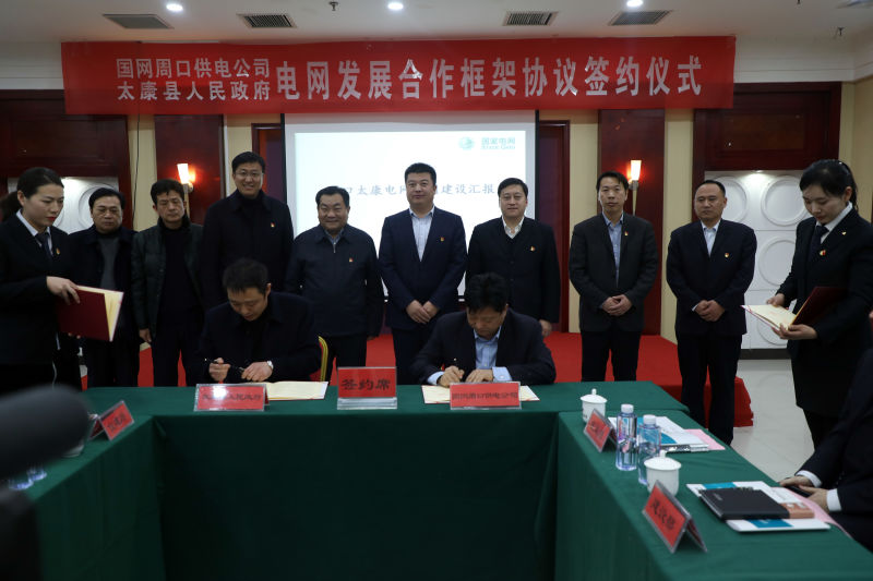 2月13日,太康縣人民政府與周口市供電公司舉行電網(wǎng)發(fā)展合作框架協(xié)議簽約儀式。周口市供電公司總經(jīng)理郭雷、副總經(jīng)理靳玉林,紀(jì)委書記、工會(huì)主席張浩,太康縣領(lǐng)導(dǎo)王國璽、董鴻、喬偉等出席簽約儀式。縣委常委、縣委辦公室主任董鴻主持簽約儀式。