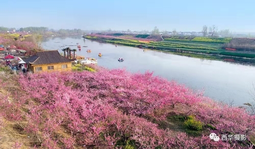 每年3月底至4月上旬,西華潁河兩岸萬畝桃花競相開放,樹下金燦燦的油菜花、綠油油的麥苗相映成趣,紅、黃、綠構成了五彩繽紛的人間仙境,置身其中,花香沁人心脾,色彩絢麗奪目,景色美不勝收,恍如身處陶淵明筆下的“世外桃源”。