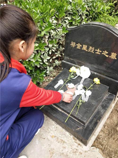 祭掃儀式在莊嚴(yán)的少年先鋒隊(duì)隊(duì)歌中拉開序幕,同學(xué)們穿戴整齊、佩戴紅領(lǐng)巾,在鮮艷的隊(duì)旗下,全體學(xué)生向革命烈士肅立、敬禮,并向烈士紀(jì)念碑敬獻(xiàn)花籃,肅立默哀,深切緬懷革命先烈,寄托對英雄的沉痛哀思和崇高敬意。