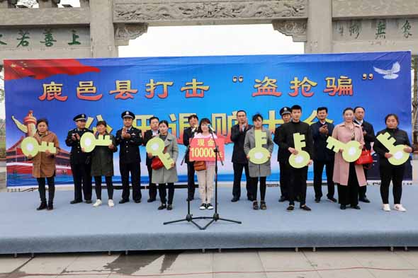 4月25日上午,鹿邑縣召開打擊“盜搶騙”專項行動公開退贓大會。縣委常委、政法委書記侯自峰出席會議并講話??h公、檢、法、司等有關(guān)部門負責(zé)人與群眾代表近300人參加退贓大會。