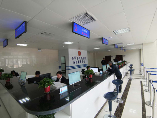 在西華縣人民法院訴訟服務(wù)中心,當事人及社會公眾可通過訴訟服務(wù)智能系統(tǒng)的自助終端進行網(wǎng)上立案、案件查詢、訴訟引導(dǎo)、閱卷申請、聯(lián)系法官和查看法庭位置、開庭公告等信息,并可打印文書樣式。