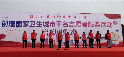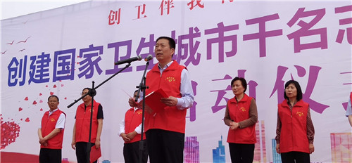 儀式現(xiàn)場,閆立超宣布創(chuàng)建國家衛(wèi)生城市志愿服務活動正式啟動。