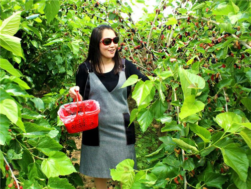 五月,正是桑椹成熟的季節(jié)。在河南益品椹業(yè)有限公司桑椹采摘園里,那鮮紅欲滴、紫黑透亮、又大又甜的桑椹果壓彎了枝頭,一嘟嘟,一串串,甚是好看。