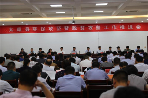 太康縣日前在脫貧攻堅(jiān)指揮部視頻會(huì)議室召開環(huán)保攻堅(jiān)暨脫貧攻堅(jiān)工作推進(jìn)會(huì)。王國璽、李錫勇等縣四個(gè)班子領(lǐng)導(dǎo)及縣副處級(jí)以上干部、各鄉(xiāng)鎮(zhèn)黨委書記、縣直單位主要負(fù)責(zé)人、縣委各部委辦常務(wù)副職參加會(huì)議。