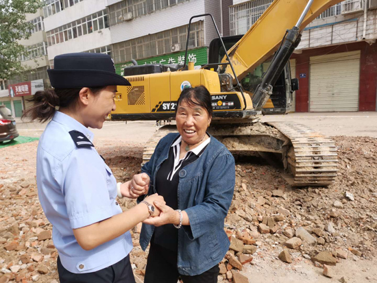 “創(chuàng)衛(wèi)不留死角,想盡辦法也要給市民良好的出行體驗?!笔泄簿终匍_黨委會議專題研究建新路西段附近居民出行問題,發(fā)出“克服困難、自掏腰包、推倒違建、平整道路”的指令,號召全警幫助居民實現(xiàn)安全出行。“這些民警、社區(qū)干部都跟我的孩子差不多大,看著他們頂著大太陽清理雜物,夜里還在加班加點工作,我給他們說‘孩子來家喝口水,吃個飯’他們都笑著拒絕了。真感謝他們,也心疼他們?!闭f起“創(chuàng)衛(wèi)”以來,市公安局民警和社區(qū)干部的工作,70多歲的智老太眼含熱淚。