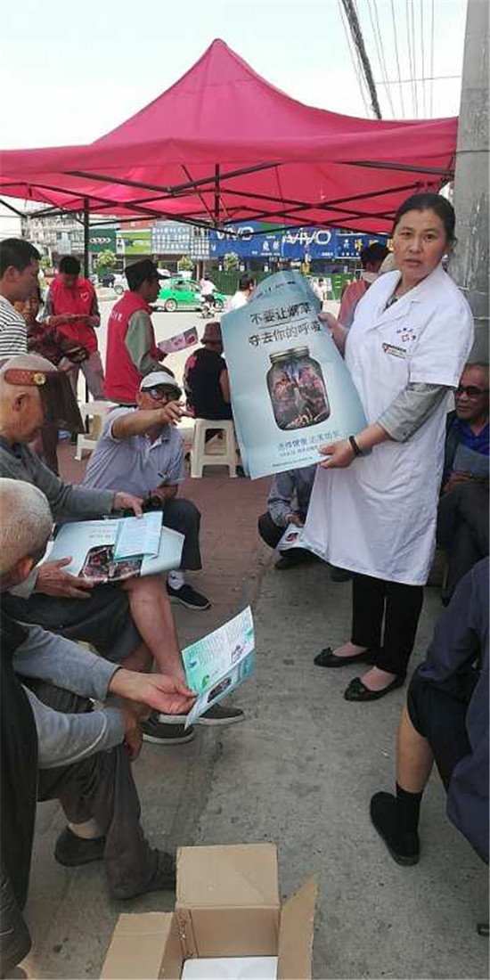 該縣疾控中心組織8名工作人員,在支農(nóng)路北段以懸掛宣傳主題橫幅、擺放宣傳展板、設(shè)立義診咨詢臺、發(fā)放宣傳資料等形式,向過往市民宣傳吸煙可導(dǎo)致肺部損傷和增加高血壓風(fēng)險(xiǎn)等危害,以及戒煙的方法等知識,引導(dǎo)大家遠(yuǎn)離煙草,養(yǎng)成健康、文明的生活方式。